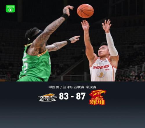 第四节辽宁德兹明-威尔斯拿下6分,深圳贺希宁拿下13分,最终辽宁83-87不敌深圳