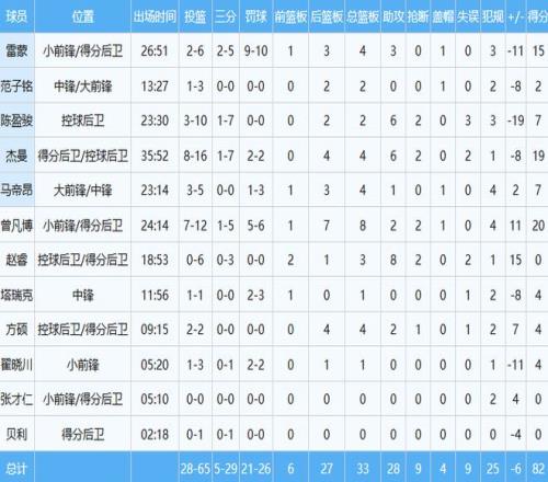 全场比赛,赵睿替补出战约19分钟,手感不佳六投全丢没有得分,但送出全队最高的8次助攻外加3板2断,正负值+15并列全场最高。