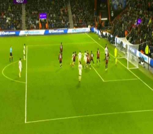 第95分钟,伯恩茅斯利用大力边线球战术制造混乱,阿德利混战当中完成绝杀,3-2!